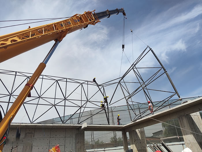 螺栓球網(wǎng)架安裝過程中需要注意的事項(xiàng) 工作人員在網(wǎng)架加工的過程中,除了要嚴(yán)格遵守施工規(guī)范,還要遵守工作人員的注意事項(xiàng)。由于電廠干煤棚網(wǎng)架搭...