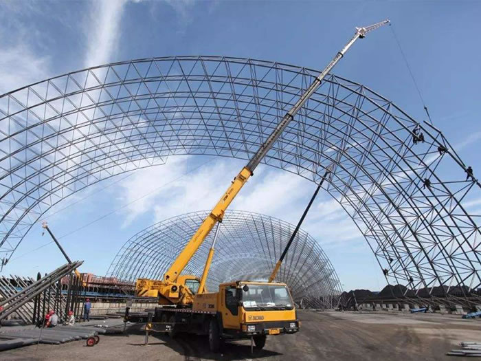 煤場(chǎng)封閉料倉網(wǎng)架工程的安裝技術(shù)要求 煤場(chǎng)封閉料倉網(wǎng)架工程在生活中越來多,大型的煤場(chǎng)封閉料...